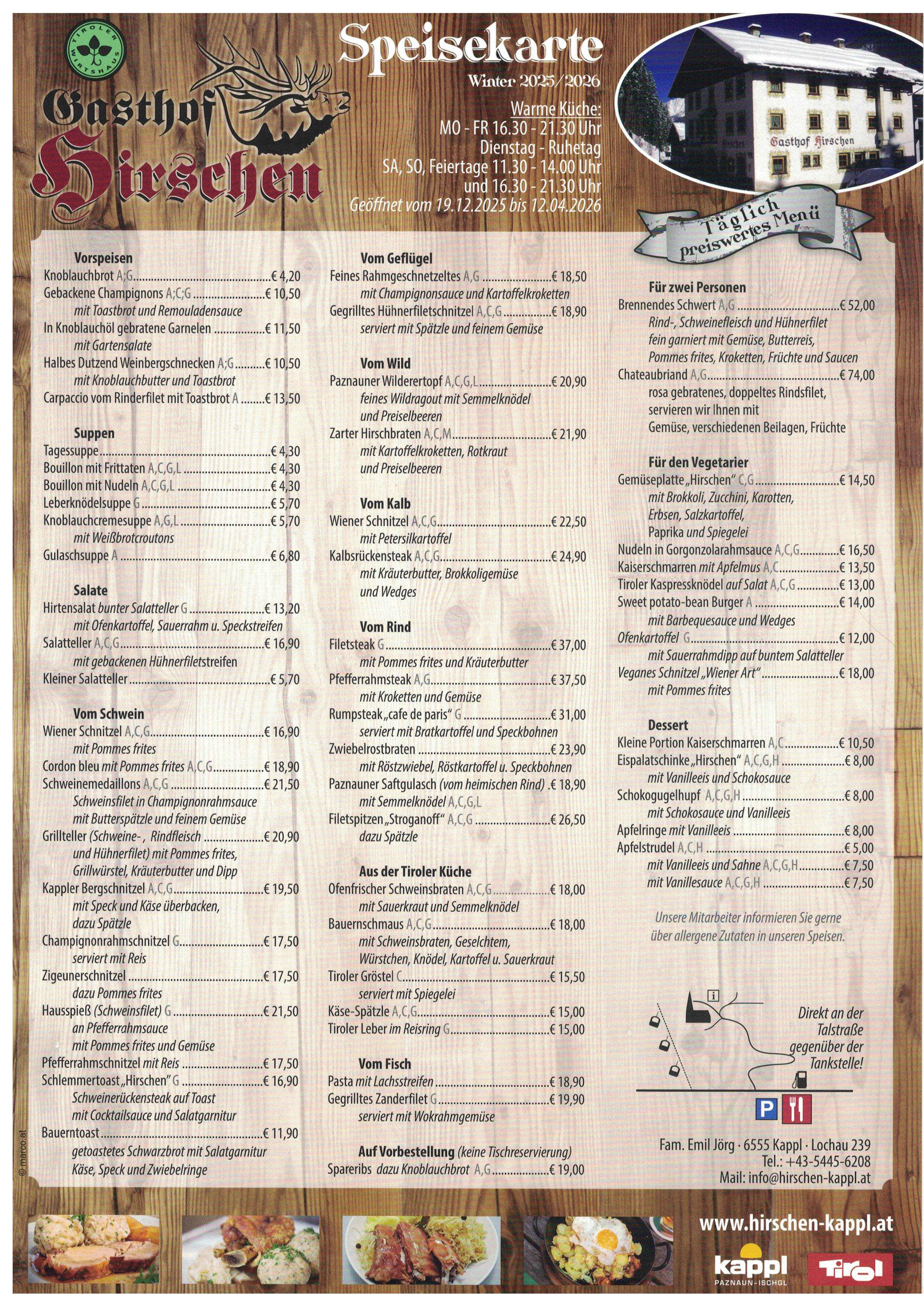 Gasthof Hirschen ** – Dein Restaurant in Kappl nahe Ischgl in Tirol